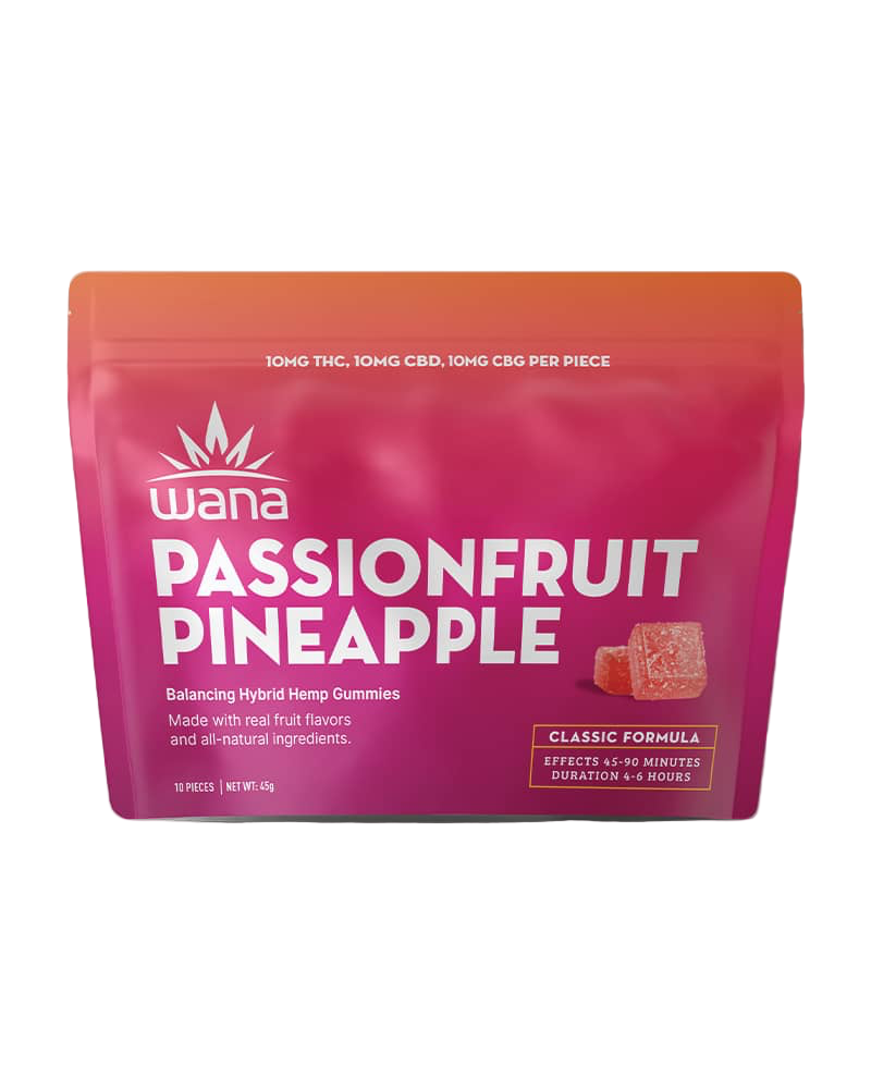 - Passionfruit Pineapple (Indica) – 10mg THC; tropical flavor with smooth body relaxation.